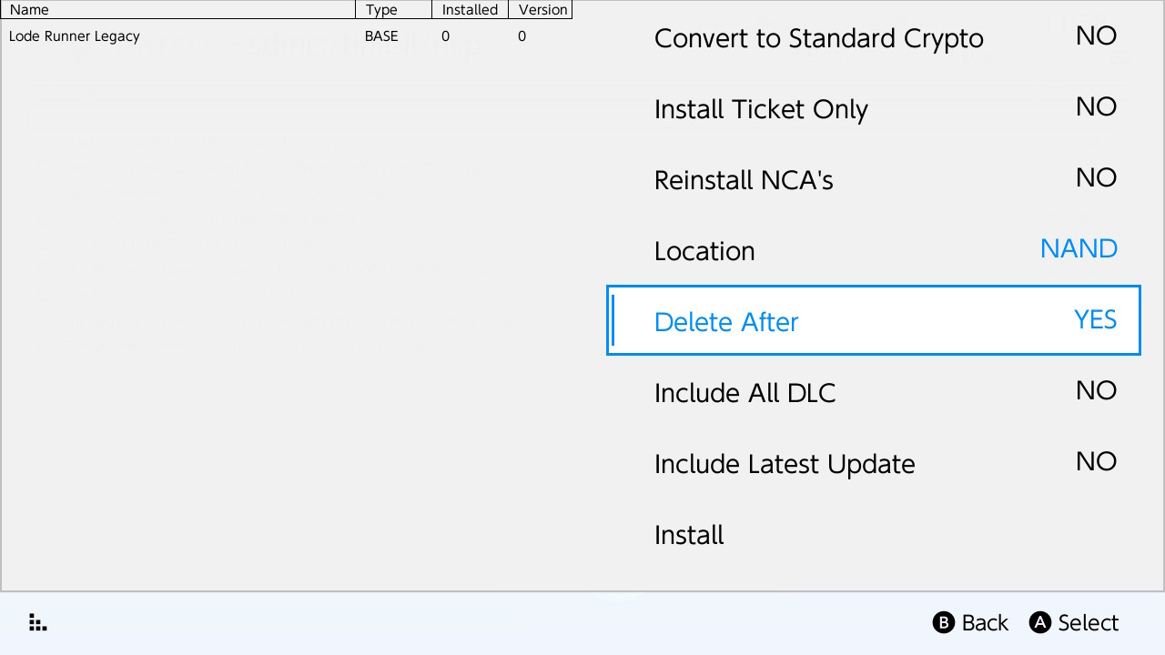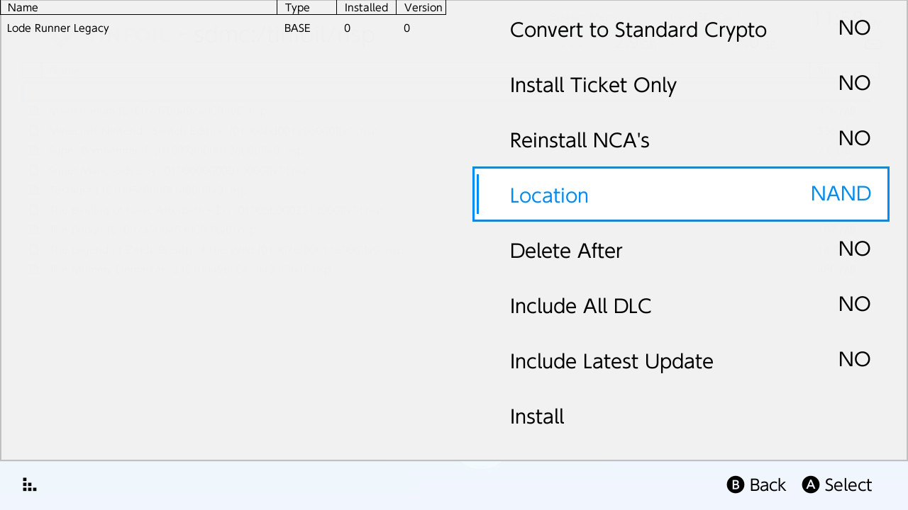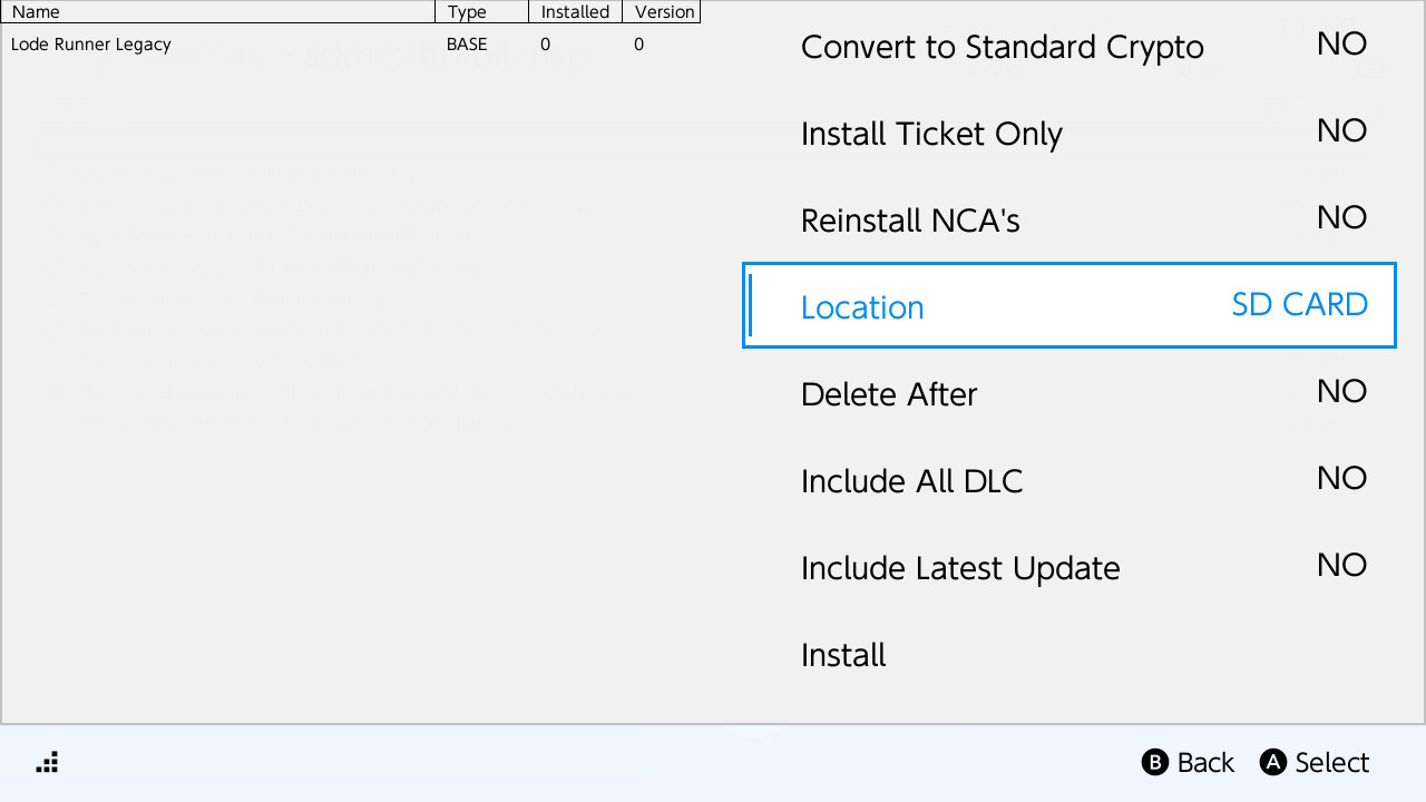 File browser - sdmc - ищем папку с установочными файлами игр и выбираем игру, которую хотим установить